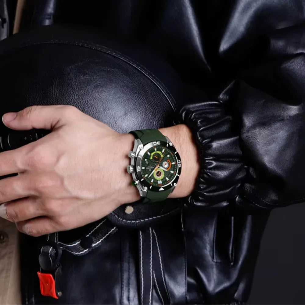 Estoque limitado. Ao adquirir o Relógio Cronógrafo Grand Naipe – Focus Green, você se une a um grupo de homens que vivem com propósito e postura. Mostre quem você é — o tempo está nas suas mãos.