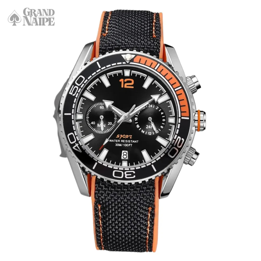 Estoque limitado. Ao adquirir o Relógio Cronógrafo Grand Naipe – Sport Preto e Laranja, você se une a um grupo de homens que vivem com propósito e postura. Mostre quem você é — o tempo está nas suas mãos.