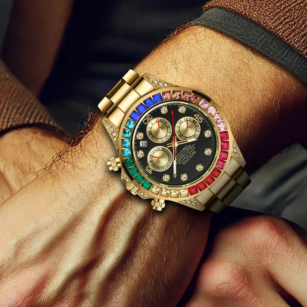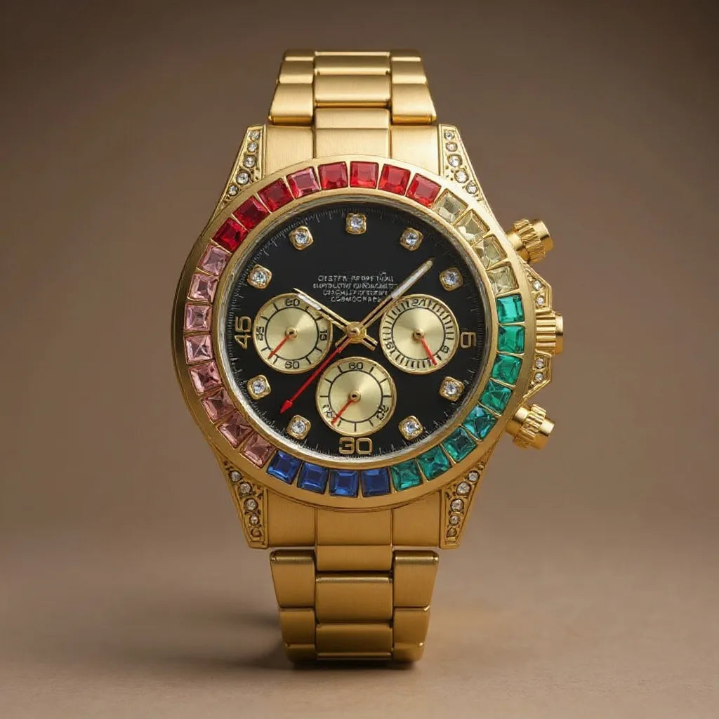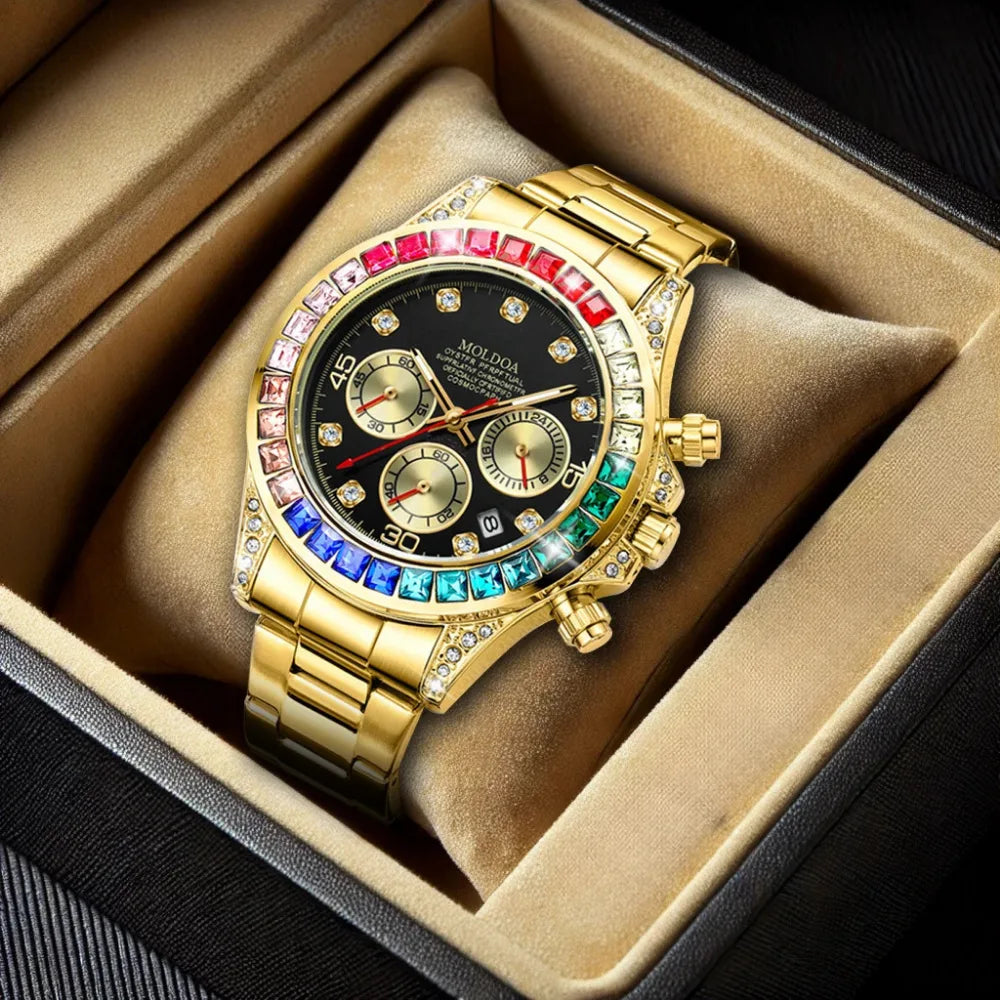 Equipado com cronógrafo funcional, calendário completoe ponteiros luminosos, o Stone Golden combina desempenho técnico com visual poderoso. A marcação precisa do tempo se transforma em um símbolo de disciplina e atitude.