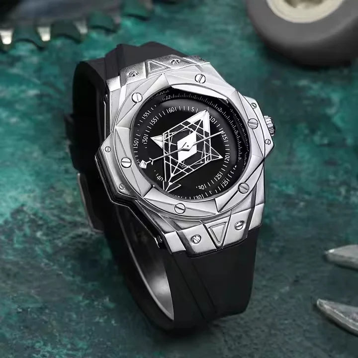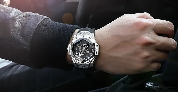 O Relógio Masculino Dourado Grand Naipe - A Hora da Ascensão foi criado para homens que buscam mais do que um acessório — procuram ressignificar o próprio tempo. Inspirado na Estrela de Davi, símbolo da conexão entre céu e terra, este relógio representa a queda e a ascensão, a força íntima que se transforma em presença visível.